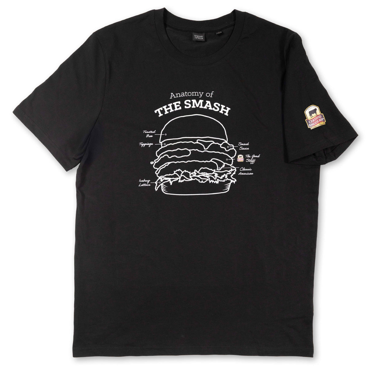 • DISTINCTIVE DESIGN: From the toasted bun to the beefy center, the design highlights all the ingredients for the tastiest smash and a full-color logo on the sleeve. Features include double-stitching and back neck taping for a durable, smooth fit.