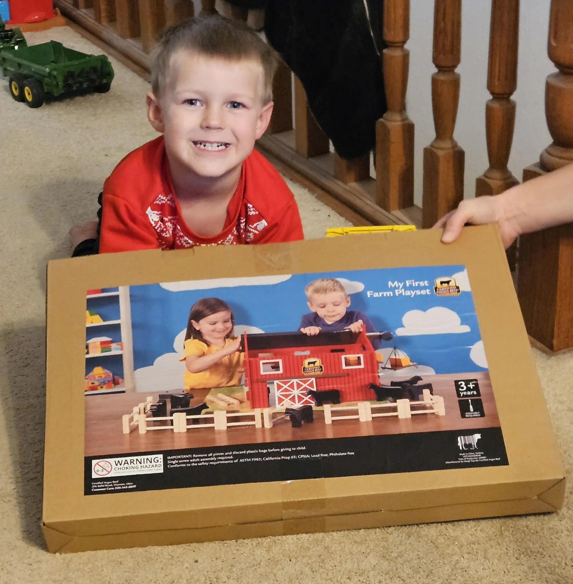 Bring farm life to playtime with the My First Farm Playset! This set features everything your little rancher needs to create their own farm scenes, including 8 cows, 2 bulls, 4 straw bales, 10 fences, 2 water troughs, a ladder, a working pulley, an adjustable barn roof and a working barn door. The realistic design sparks imagination and hands-on learning for kids ages 3 and up. Thoughtfully designed and safety-tested, this set guarantees hours of fun, exploration and creativity. Assembly required.