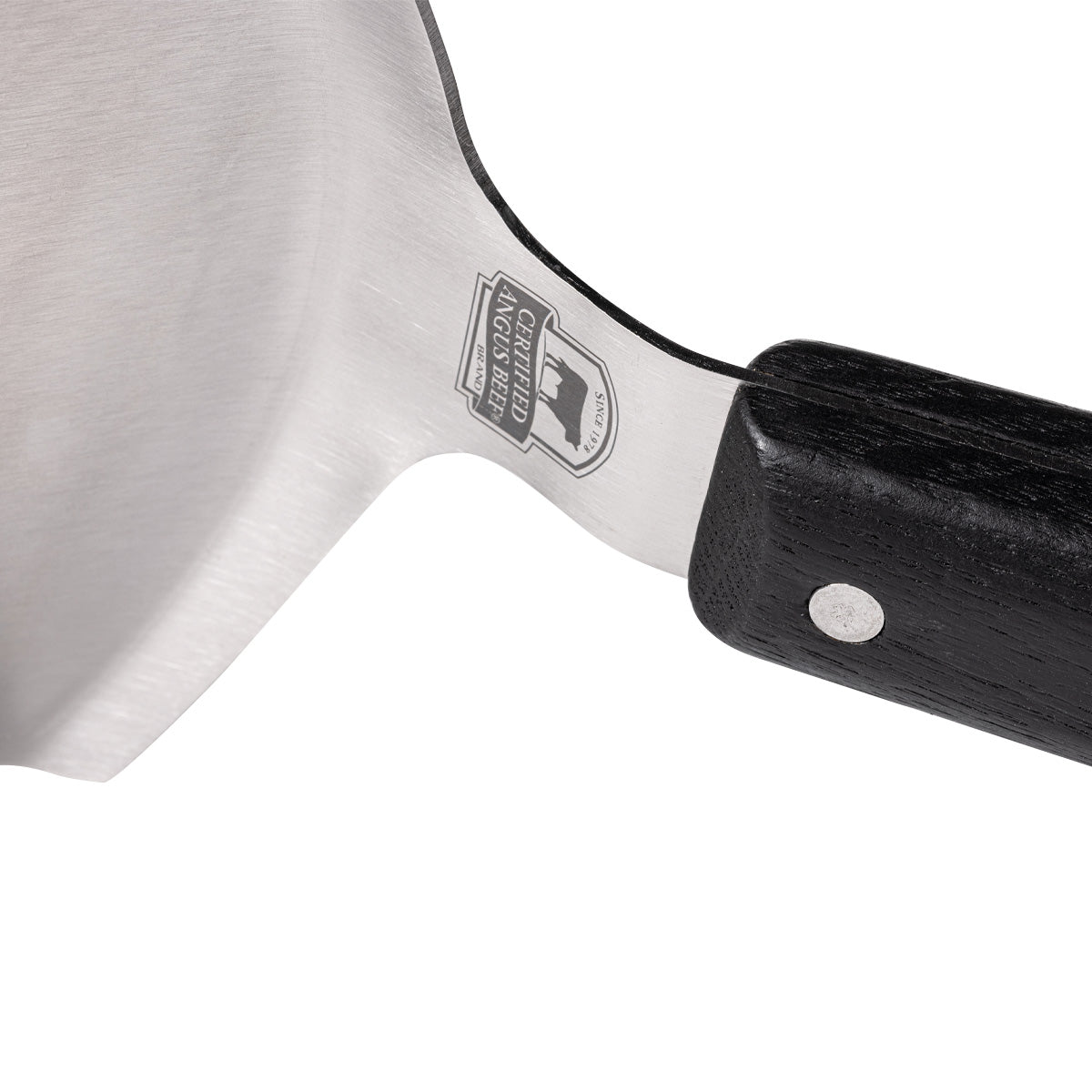 Sturdy wood handle for the perfect grip and a beveled edge for easy flips every time along with a genuine leather loop for hanging and easy access.